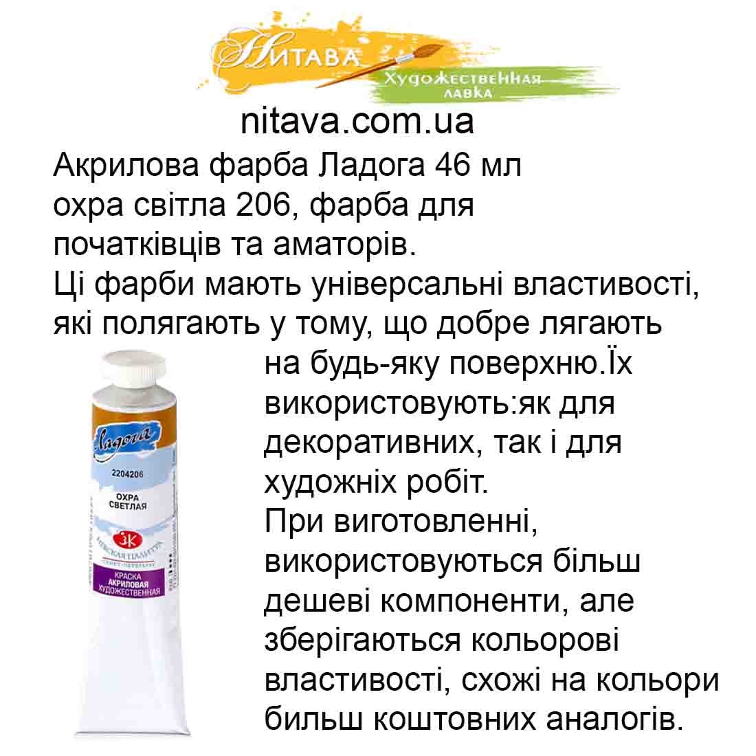 Акрилова фарба Ладога 46 мл охра світла 206