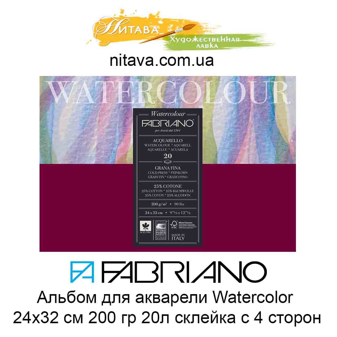 Склейка для акварелі Fabriano Watercolor 24х32 см 200 гр 20 листів з 4 сторін