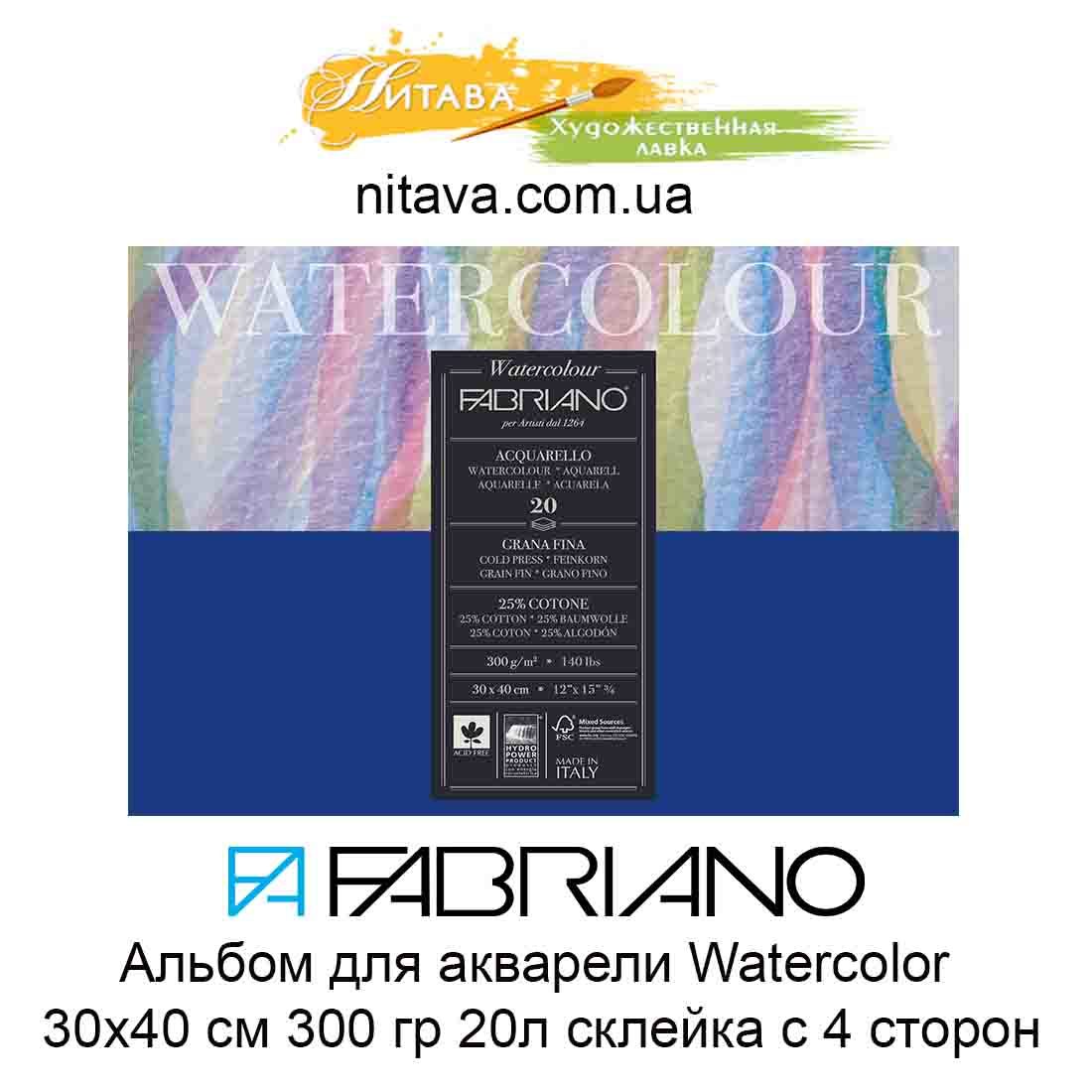 Склейка для акварелі Fabriano Watercolour 30х40 см 300 гр 20 листів з 4 сторін