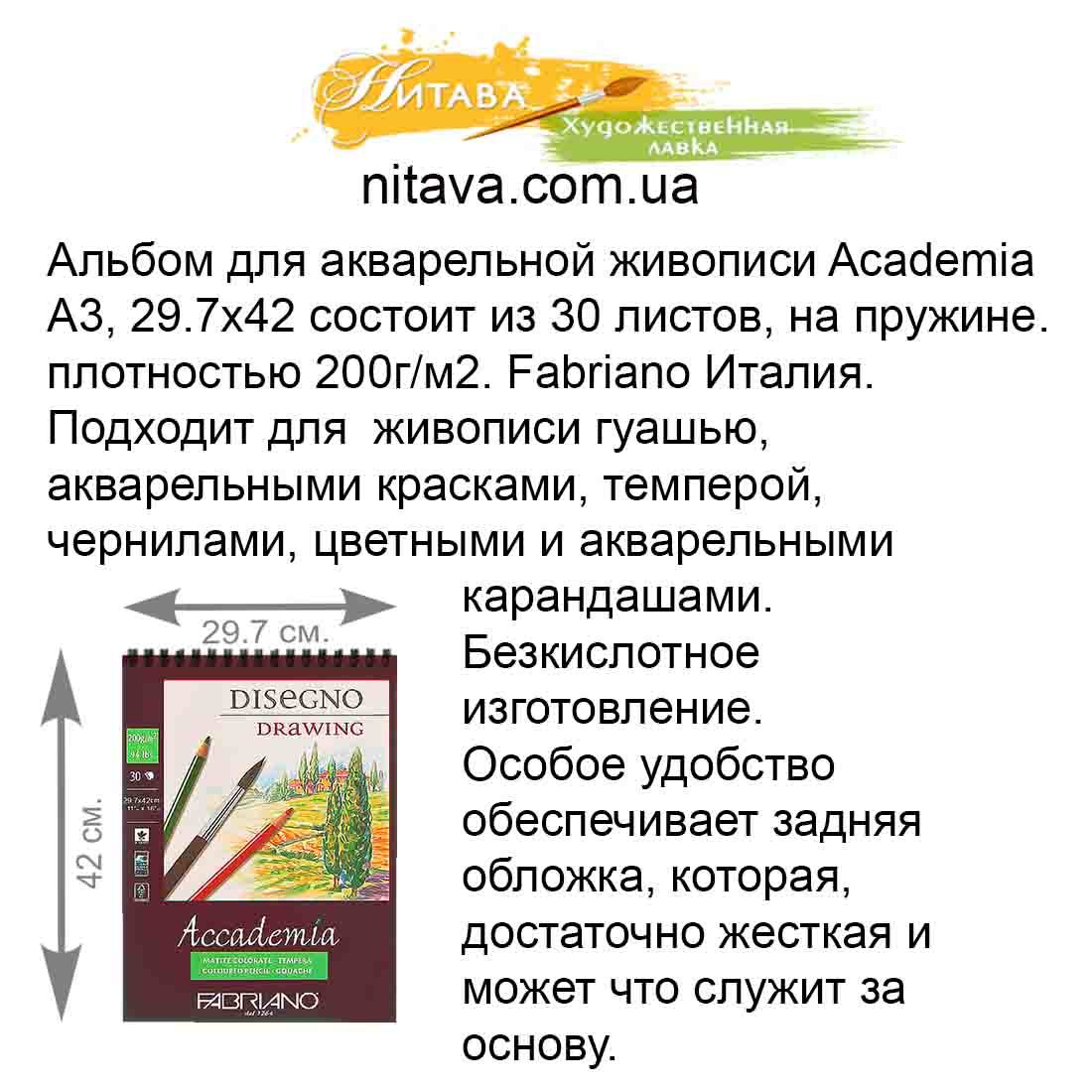 Альбом для акварелі Fabriano Academia А3 200 г 30 листів на спіралі