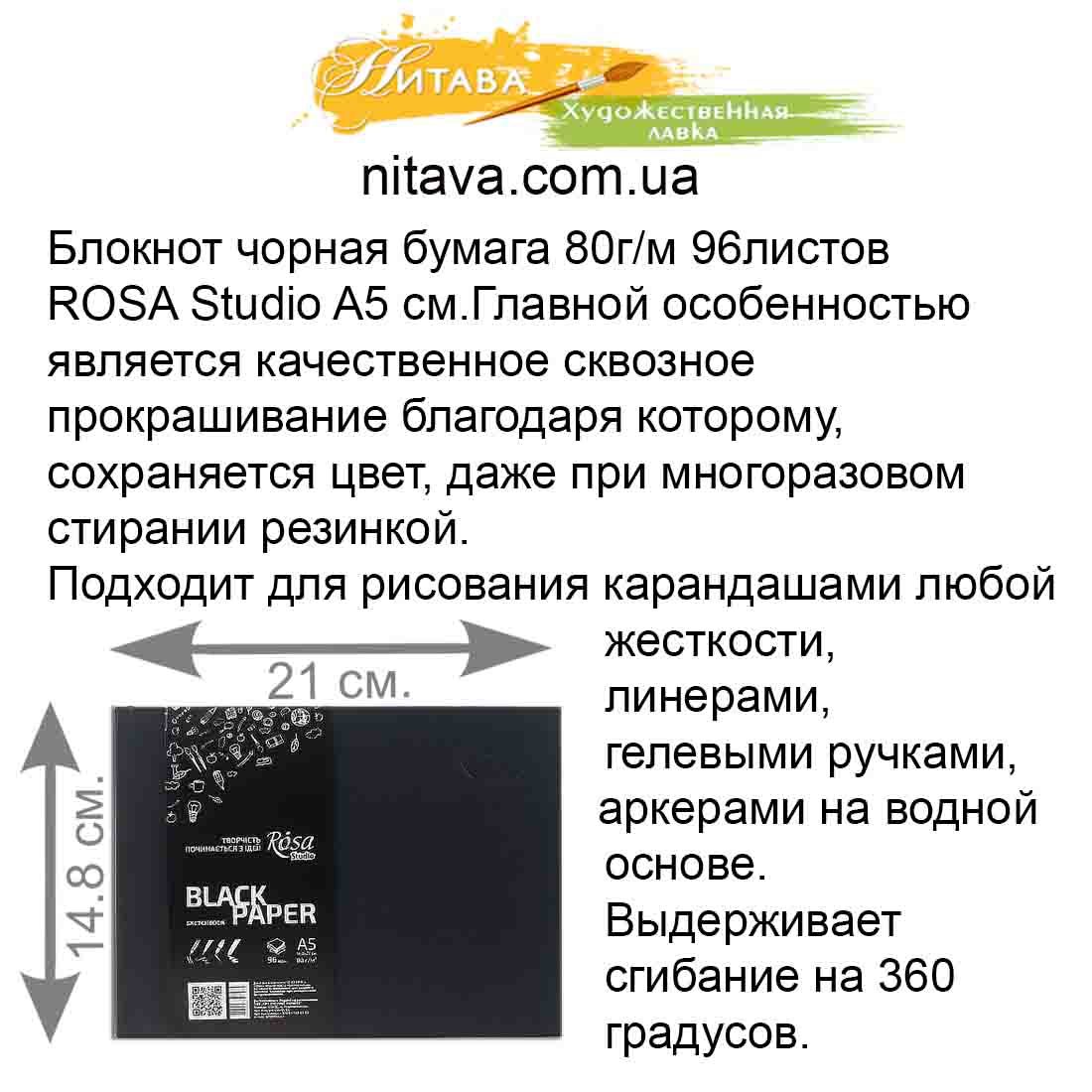 Блокнот ROSA Studio BLACK PAPER горизонтальний А5 80 г 96 л чорний