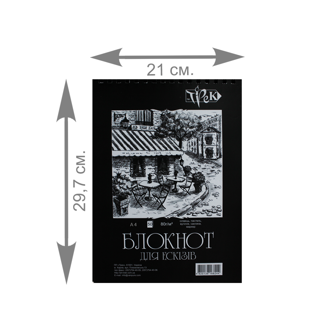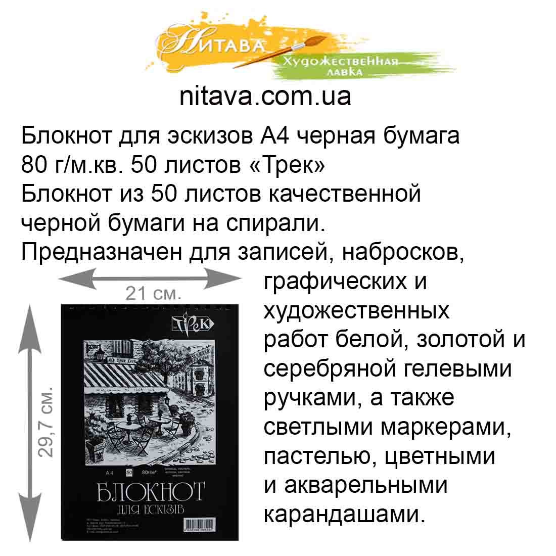 Блокнот для ескізів Трек А4 80 гр 50 л чорний папір