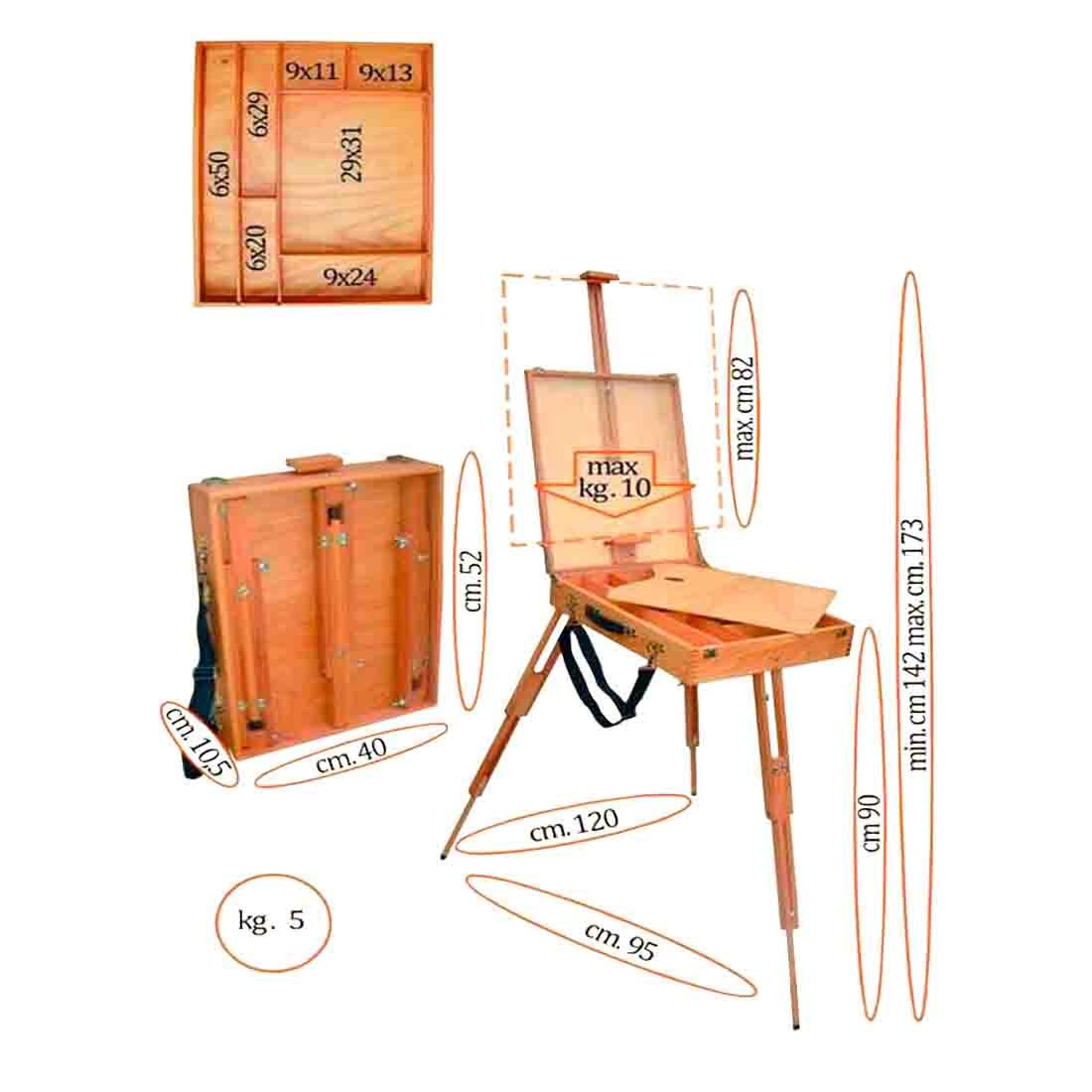 Данная модель этюдника представляет собой, раскладной, переносной, чемоданчик на треноге.