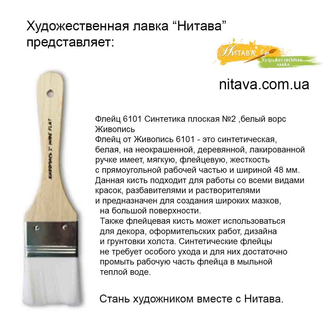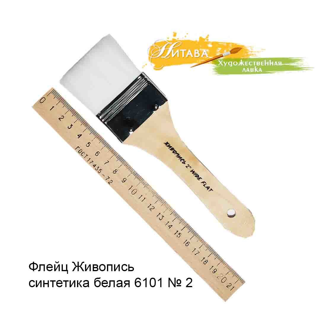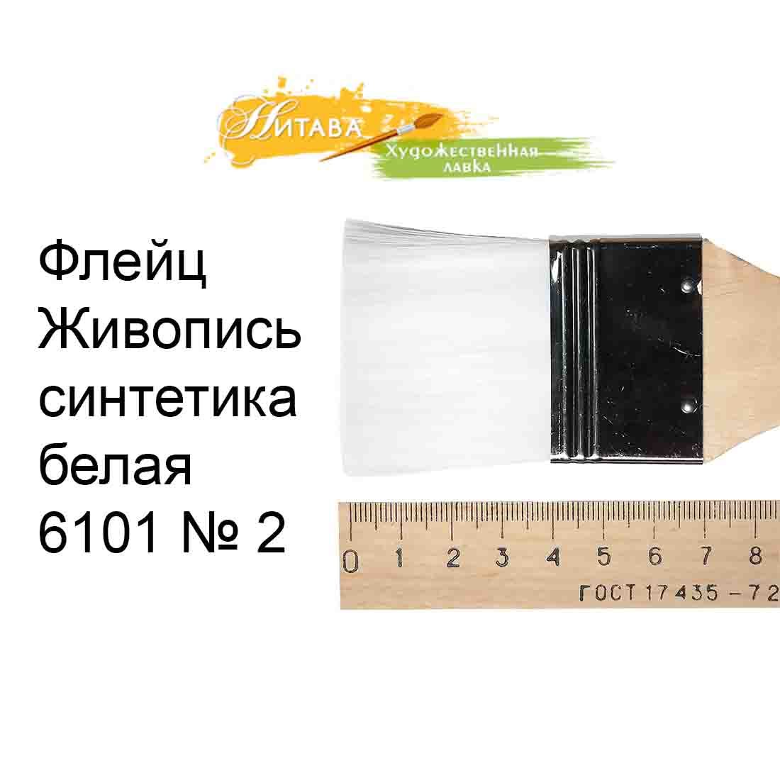 Флейц 6101 Синтетика плоская №2 белый ворс Живопись – это синтетическая, белая, на неокрашенной, деревянной, лакированной ручке.