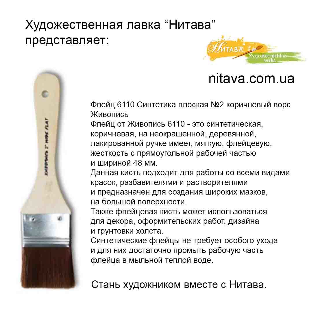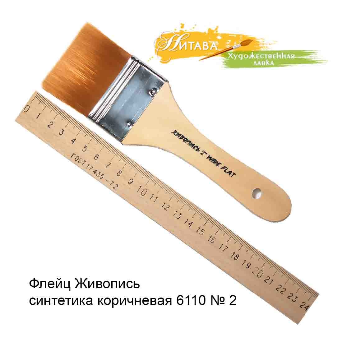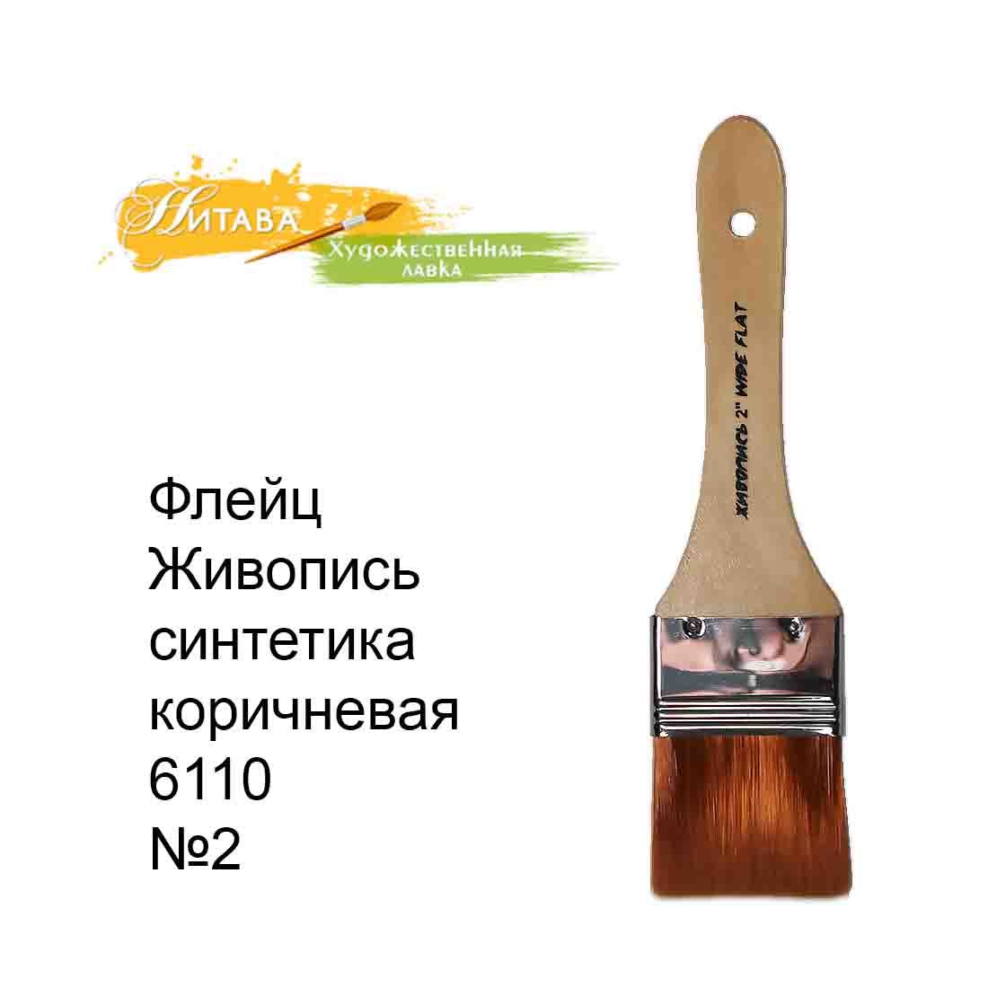 Флейц 6110 Синтетика плоская №2 коричневый ворс Живопись – это синтетическая, коричневая, на неокрашенной, деревянной, лакированной ручке.
