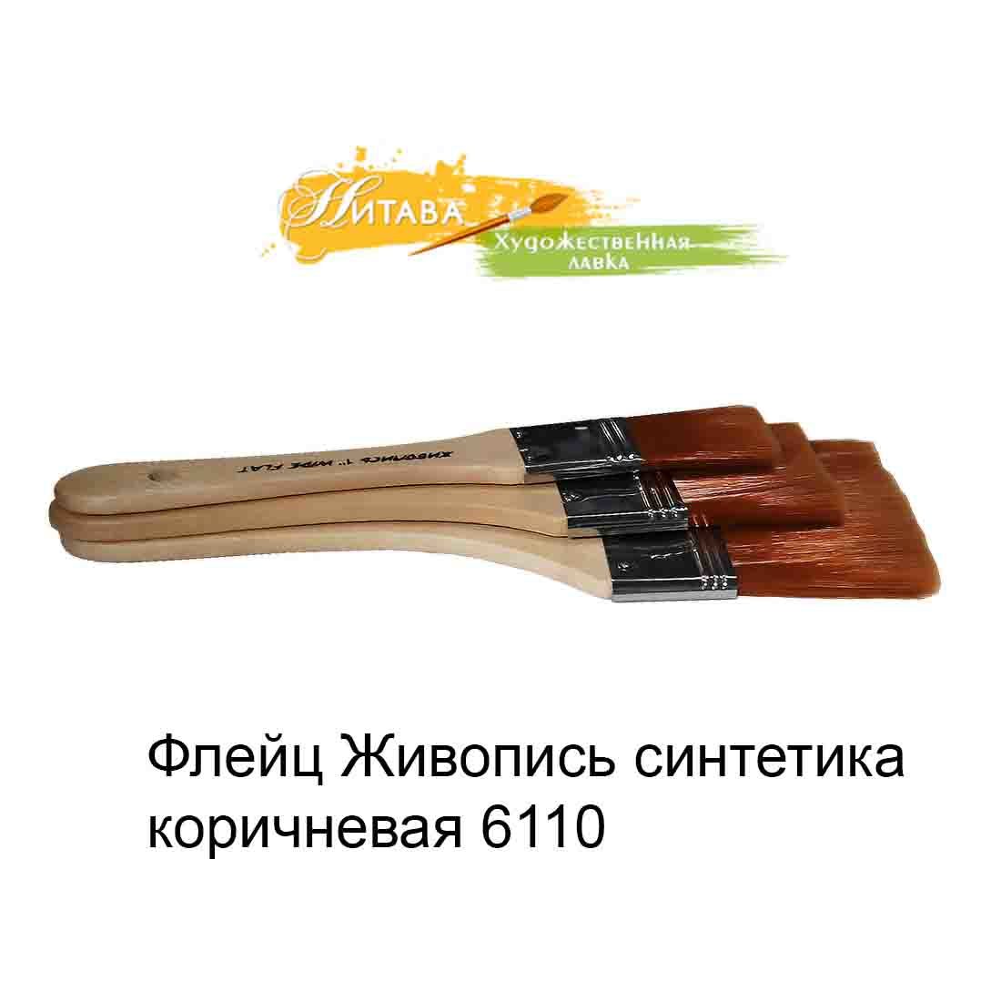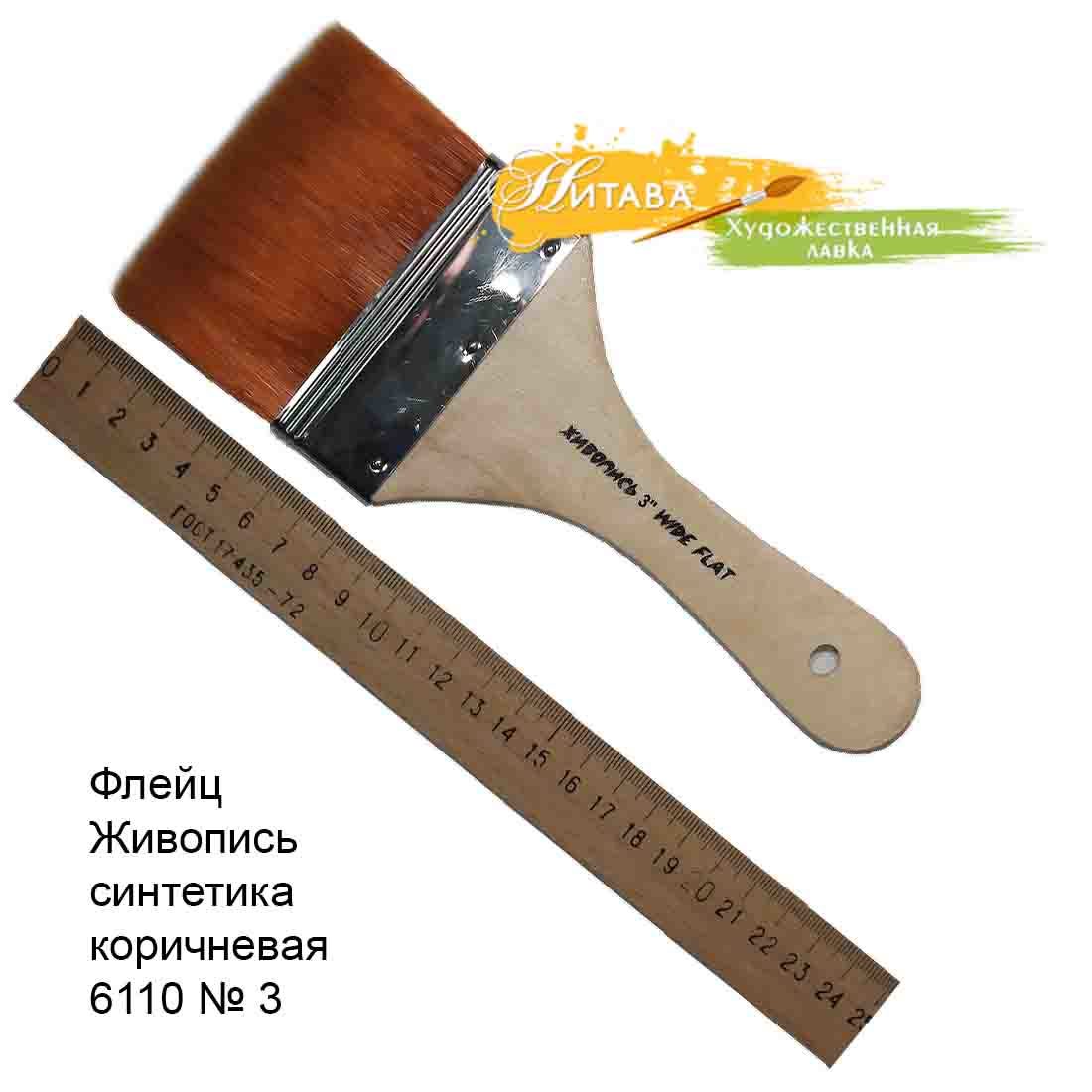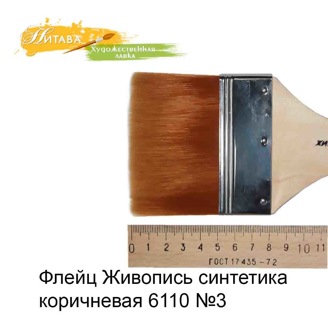 Флейц 6110 Синтетика плоская №3 коричневый ворс Живопись – это синтетическая, коричневая, на неокрашенной, деревянной, лакированной ручке.