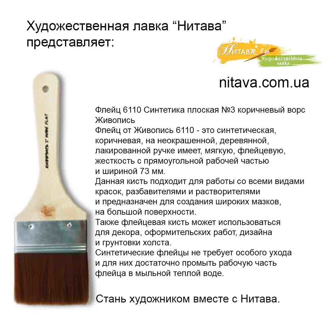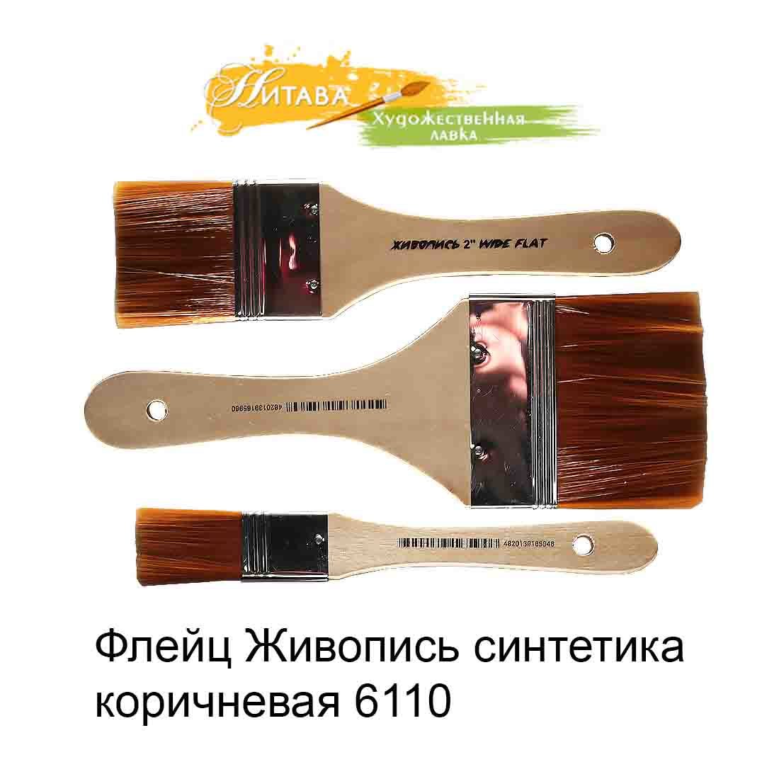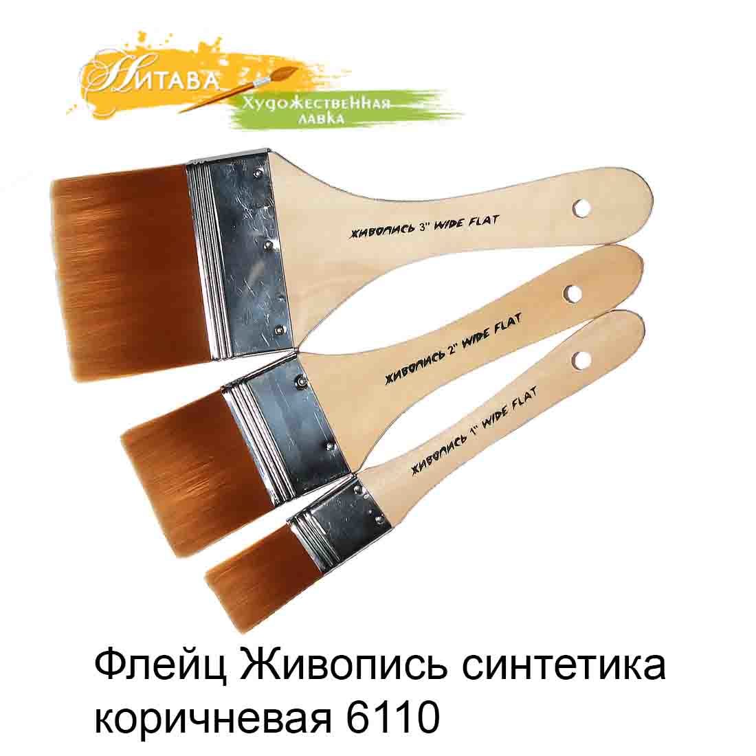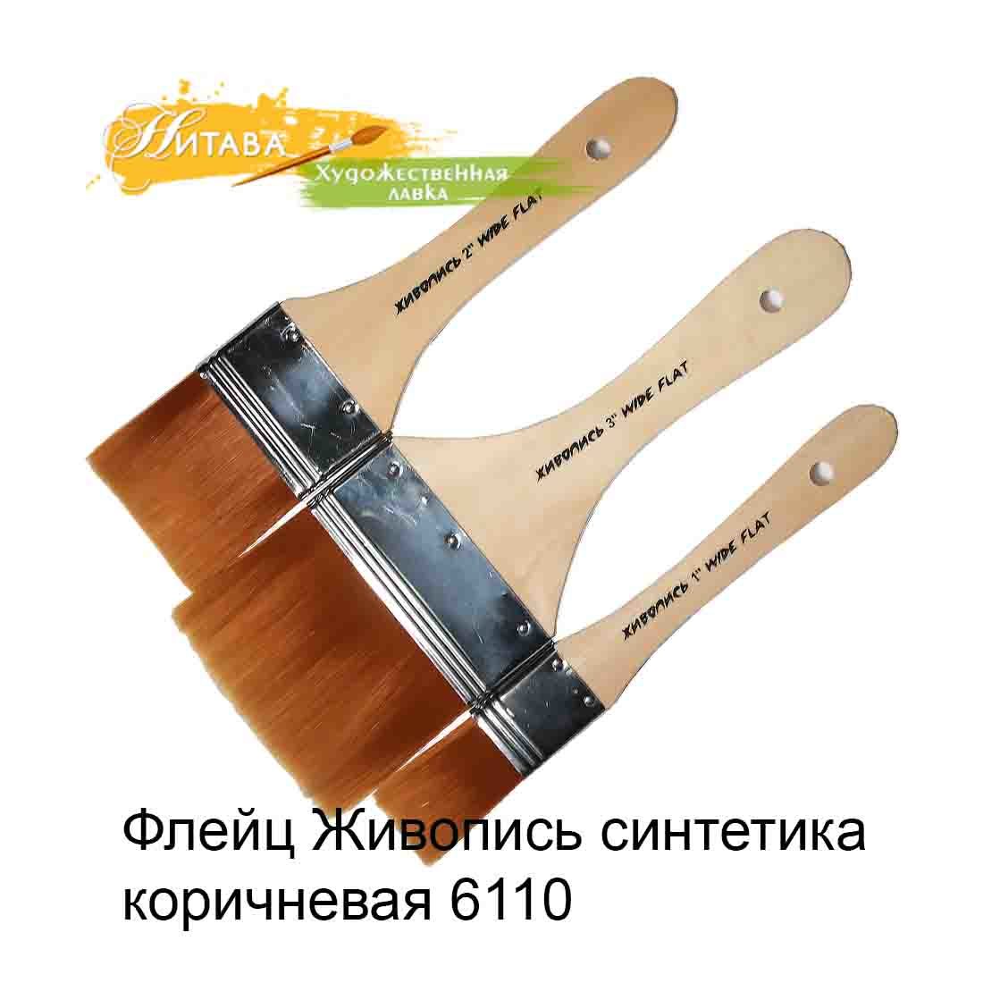 Флейц 6110 Синтетика плоская №3 коричневый ворс Живопись – это синтетическая, коричневая, на неокрашенной, деревянной, лакированной ручке.