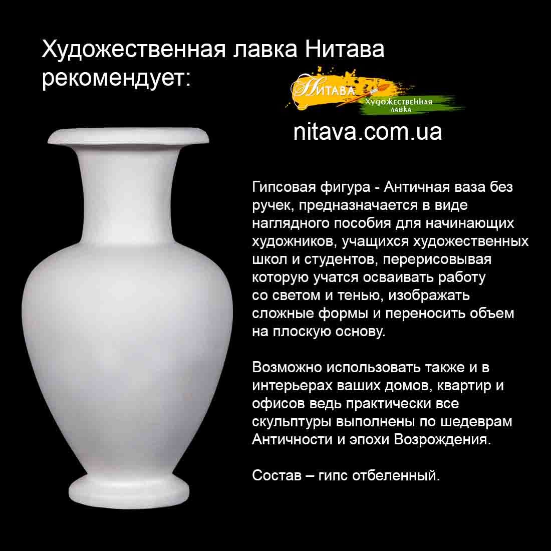 Гипсовая фигура – Античная ваза без ручек, предназначается в виде наглядного пособия для начинающих художников.