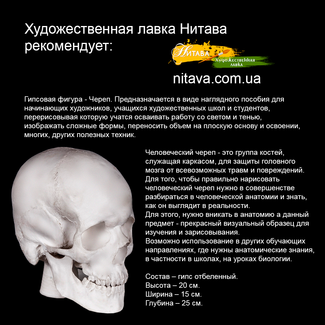 Гипсовая фигура – Череп предназначается в виде наглядного пособия для начинающих художников.