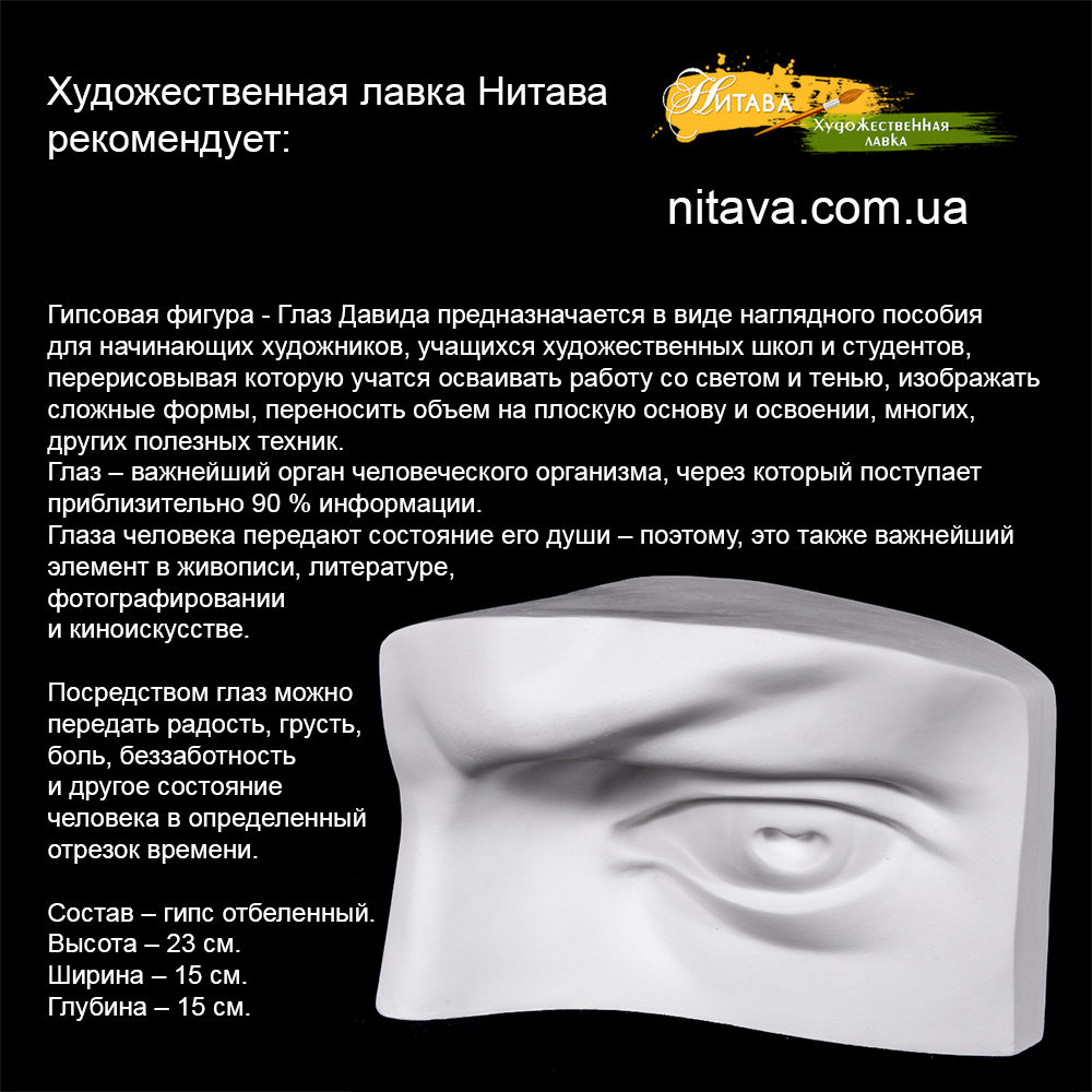 Гипсовая фигура – Глаз Давида предназначается в виде наглядного пособия для начинающих художников,