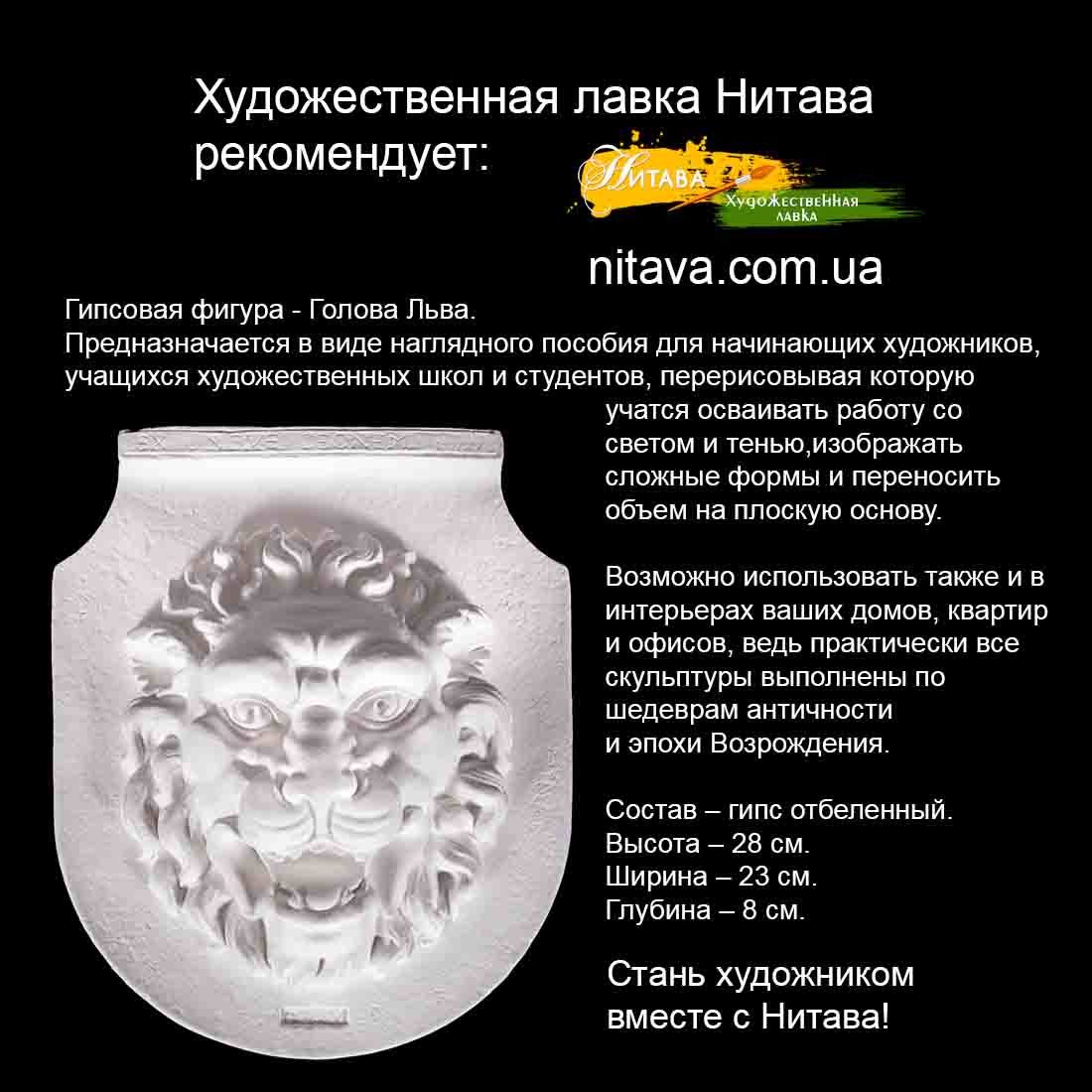 Гипсовая фигура – Голова Льва предназначается в виде наглядного пособия для начинающих художников.