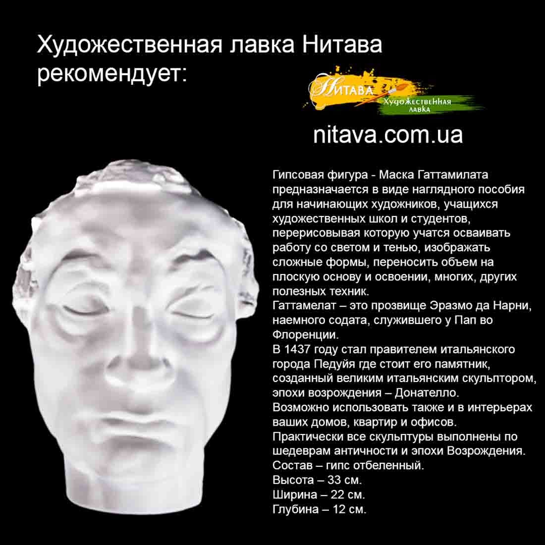 Гипсовая фигура – Маска Гаттамилата предназначается в виде наглядного пособия для начинающих художников.