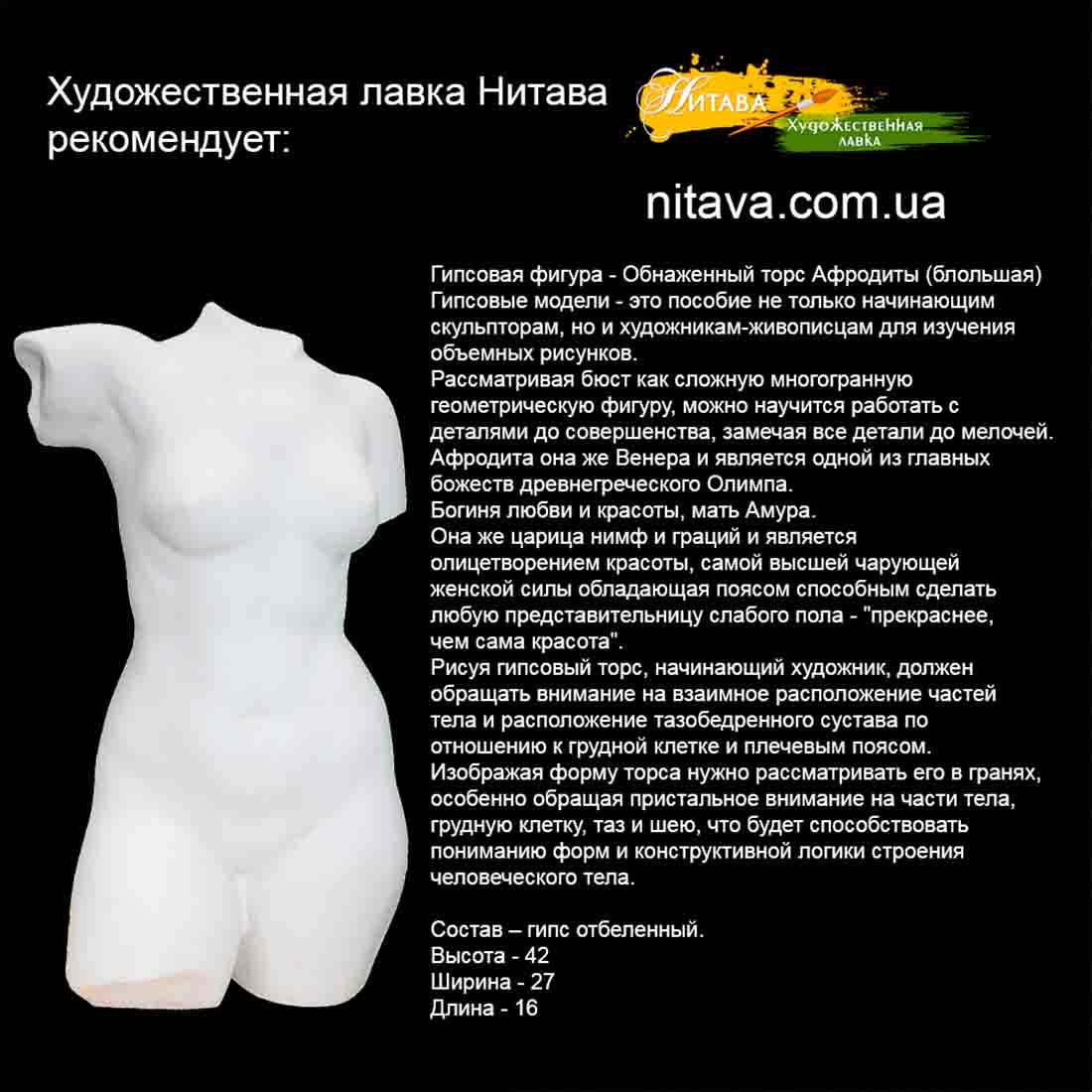 Гипсовая фигура – Обнаженный торс Афродиты(большой) это пособие не только начинающим скульпторам, но и художникам-живописцам для изучения объемных рисунков.