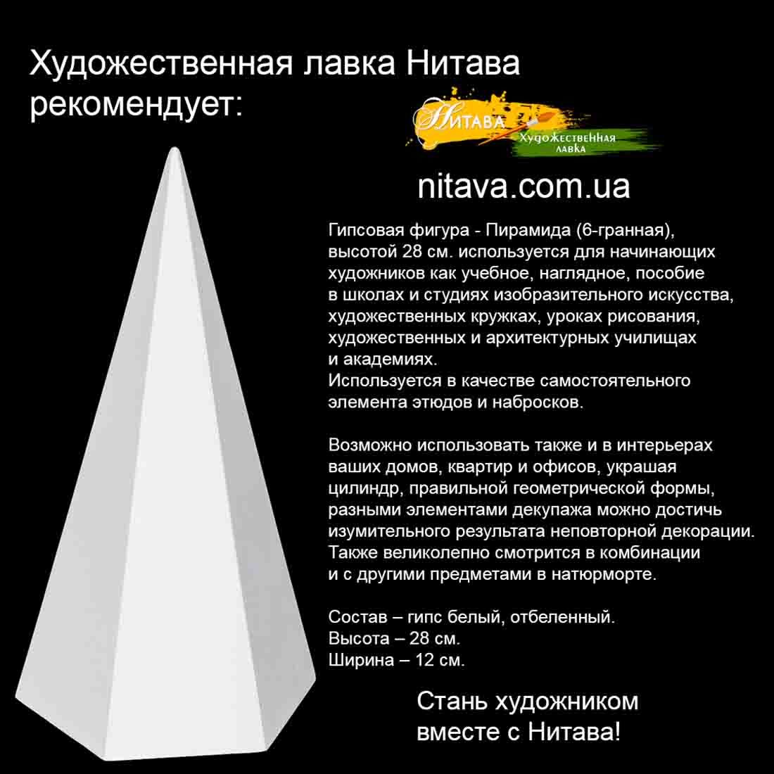 Гипсовая фигура – Пирамида (6-гранная), высотой 28 см.