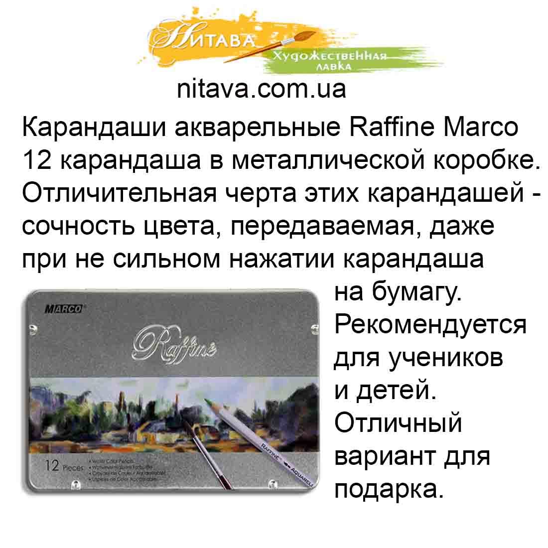 Купить Карандаши акварельные Raffine Marco 12 шт в металлической коробке можно в нашем интернет-магазине, или по адресу: город Киев ул. Вознесенский спуск 20, в знании Академии искусств.