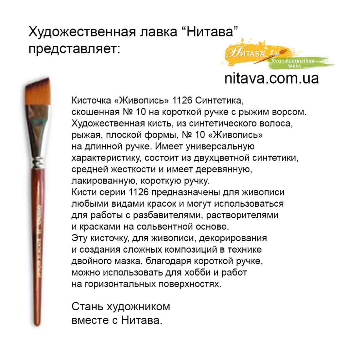 Кисть 1126 Синтетика скошенная № 10 «Живопись» – отличный вариант для воплощения ваших творческих и художественных идей.