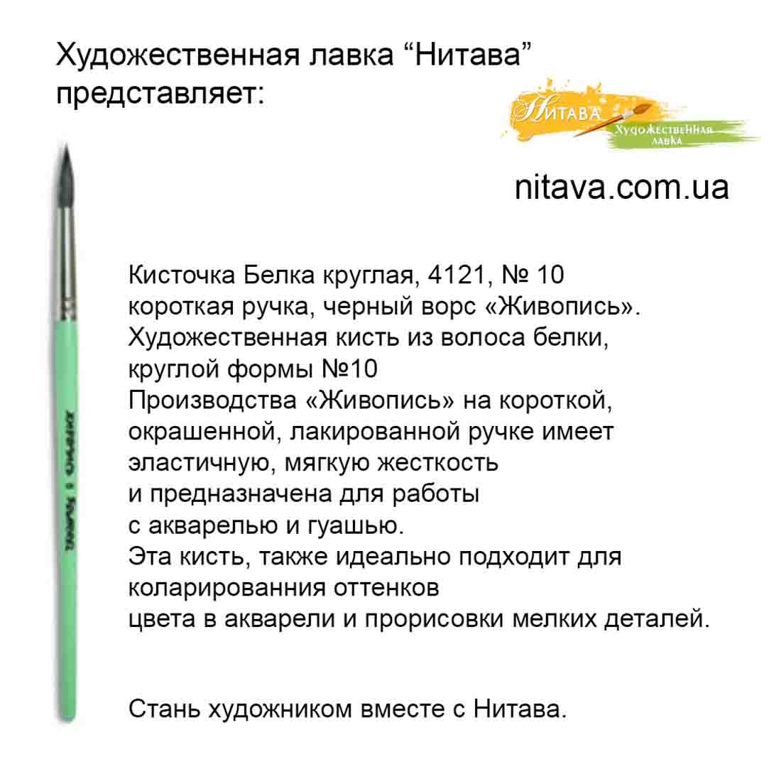 Кисть белка круглая 4121 № 10 «Живопись» из волоса белки, черного цвета и круглой формы, производства «Живопись», Китай.