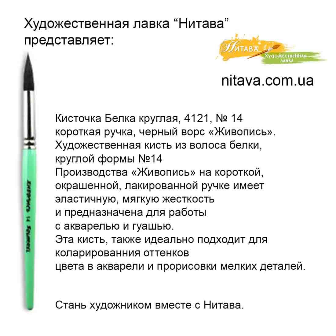 Кисть белка круглая 4121 № 14 «Живопись» из волоса белки, черного цвета и круглой формы, производства «Живопись», Китай.