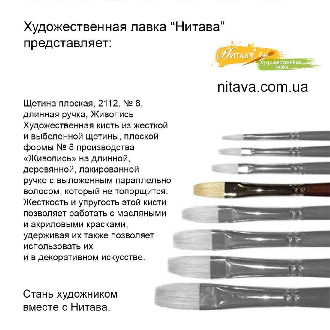 Кисть щетина плоская 2112 № 8 Живопись из жесткой и выбеленной щетины, плоской формы, производства «Живопись».