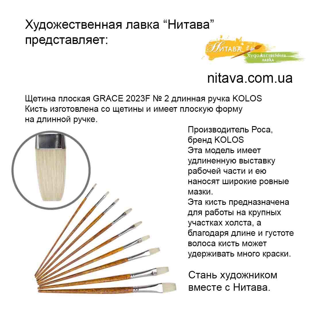 Кисть щетина плоская GRACE 2023F № 2 KOLOS – отличный вариант для воплощения ваших творческих и художественных идей.