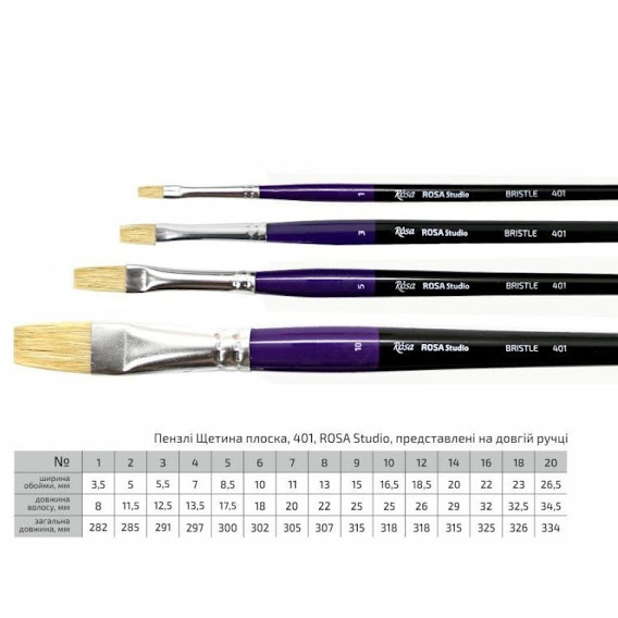 Кисть щетина плоская 401 № 1 ROSA Studio