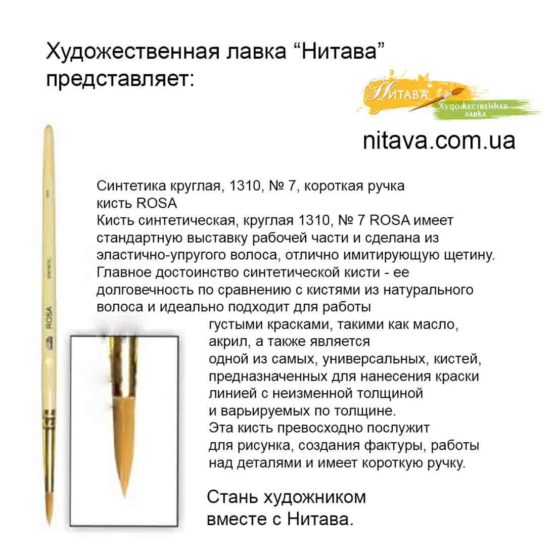 Купить Кисть синтетика круглая 1310 № 7 ROSA, можно в нашем интернет магазине или по адресу Вознесенский спуск 20, в знании Академии искусств.