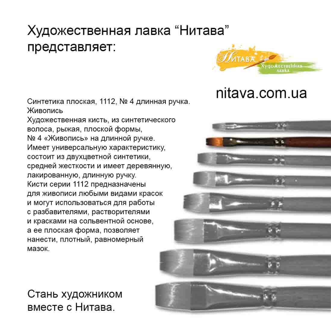 Кисть синтетика плоская 1112 №4 Живопись