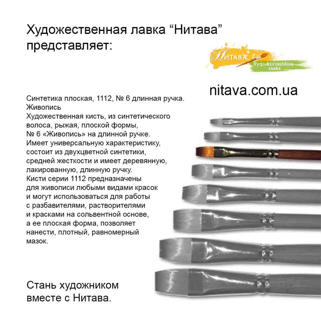 Кисть синтетика плоская 1112 №6 Живопись – отличный вариант для воплощения ваших творческих и художественных идей.