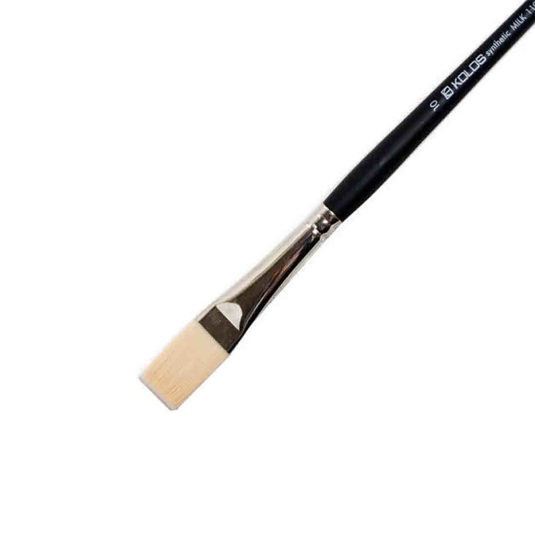 Кисть синтетика плоская Milk 1108B № 10 KOLOS, на длинной ручке кисть имеет стандартную выставку рабочей части.