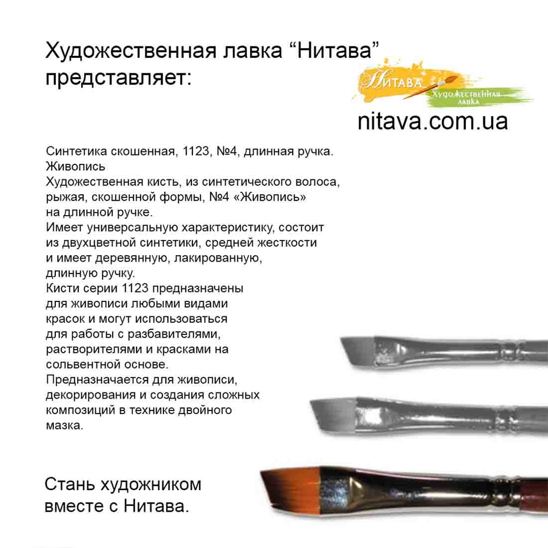 Кисть синтетика скошенная 1123 №4 Живопись – отличный вариант для воплощения ваших творческих и художественных идей.