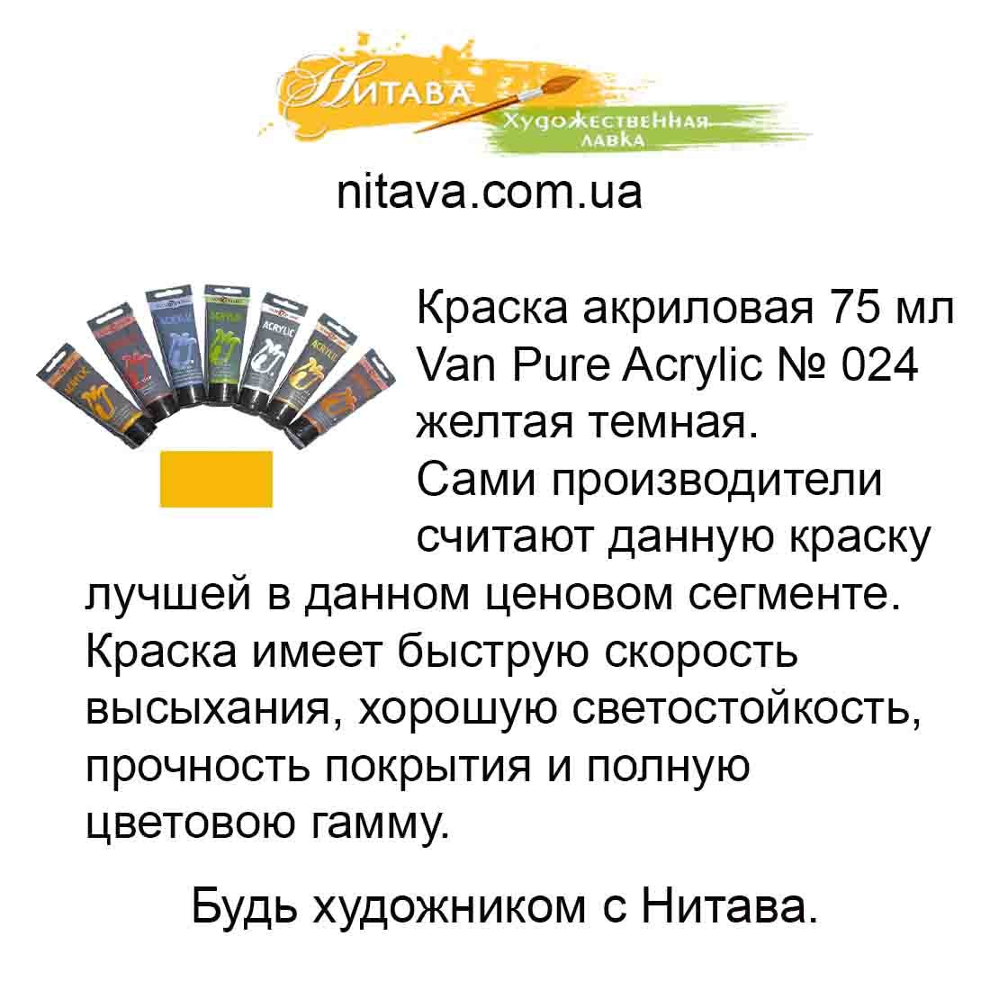 Фарба акрилова Van Pure Acrylic 75 мл Жовтий темний 024