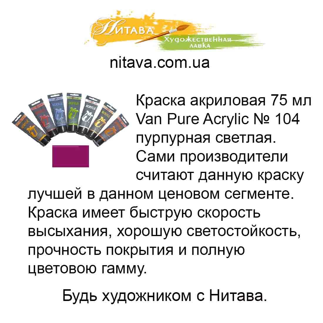 Фарба акрилова Van Pure Acrylic 75 мл Пурпурний світлий 104