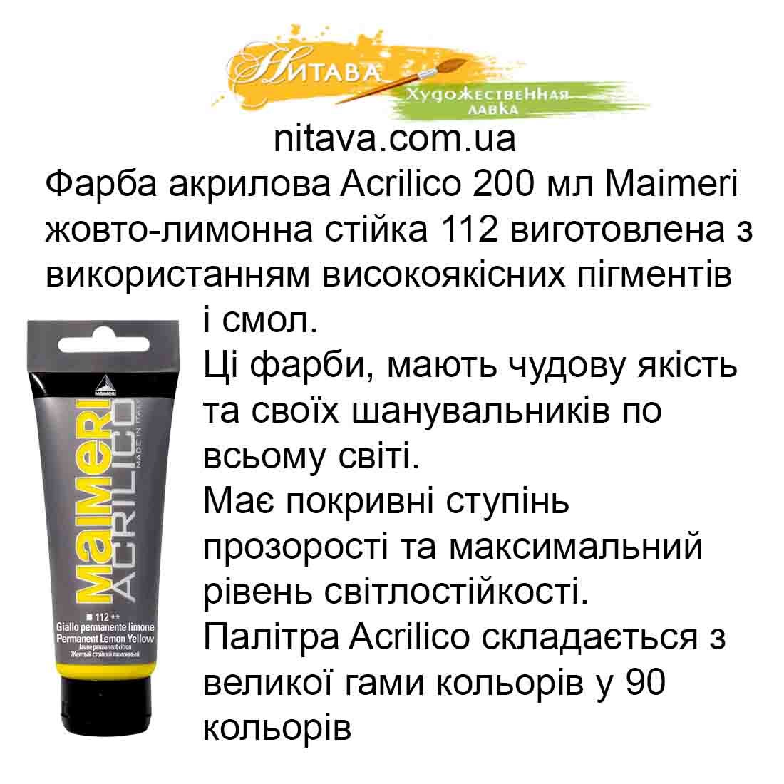 Фарба акрилова Maimeri ACRILICO 200 мл Жовтий лимонний стійкий 112