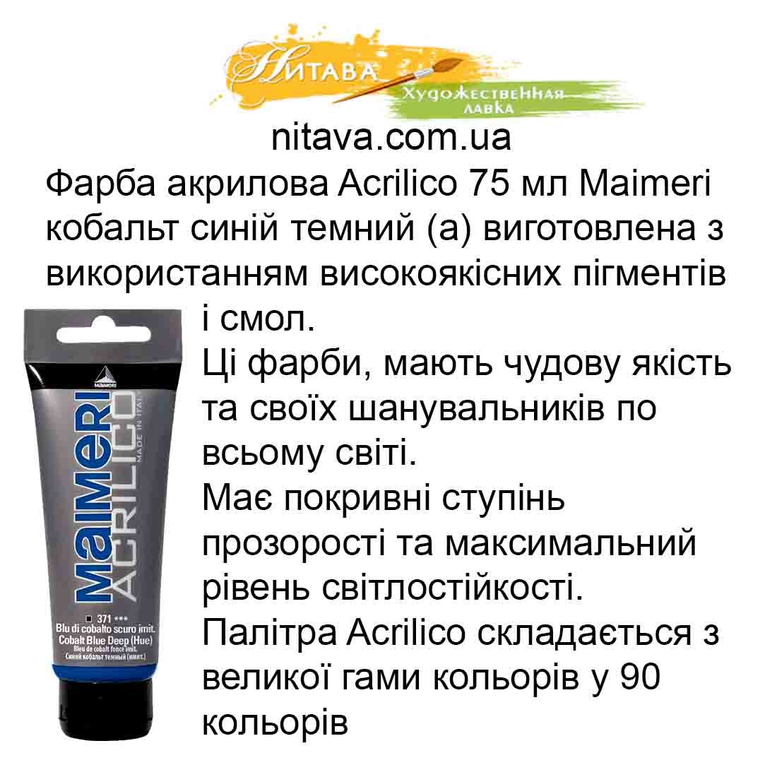 Фарба акрилова Maimeri ACRILICO 75 мл Кобальт синій темний (А) 371