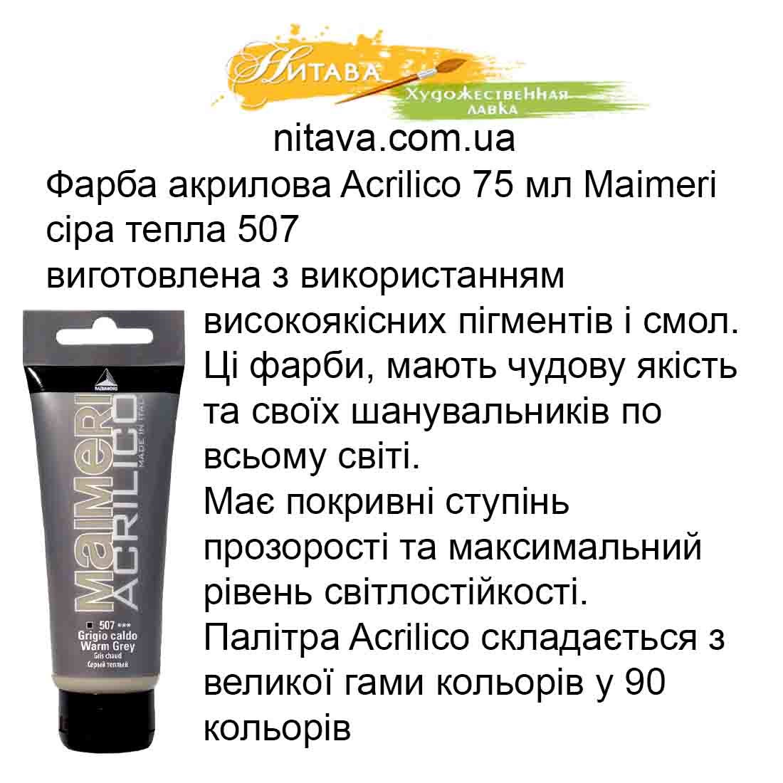 Фарба акрилова Maimeri ACRILICO 75 мл Сірий теплий 507