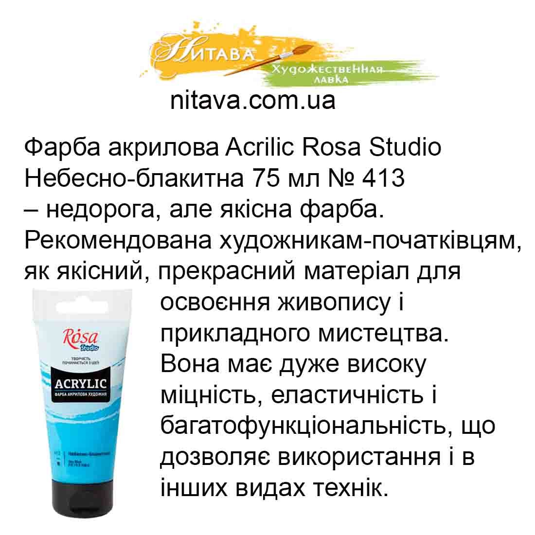 Фарба акрилова ROSA Studio ACRYLIC 75 мл Небесно-блакитна 413