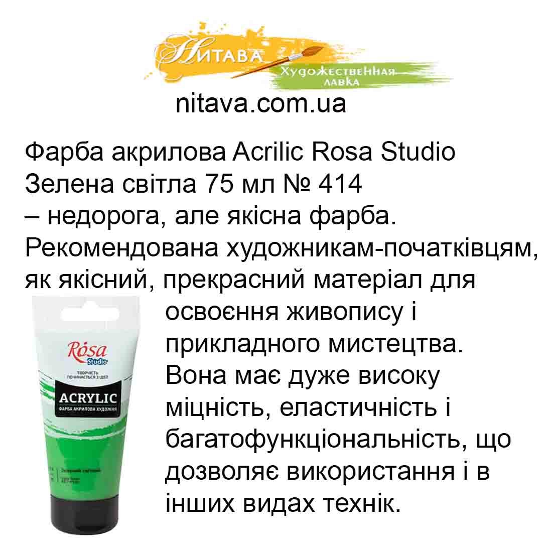 Фарба акрилова ROSA Studio ACRYLIC 75 мл Зелений світлий 414