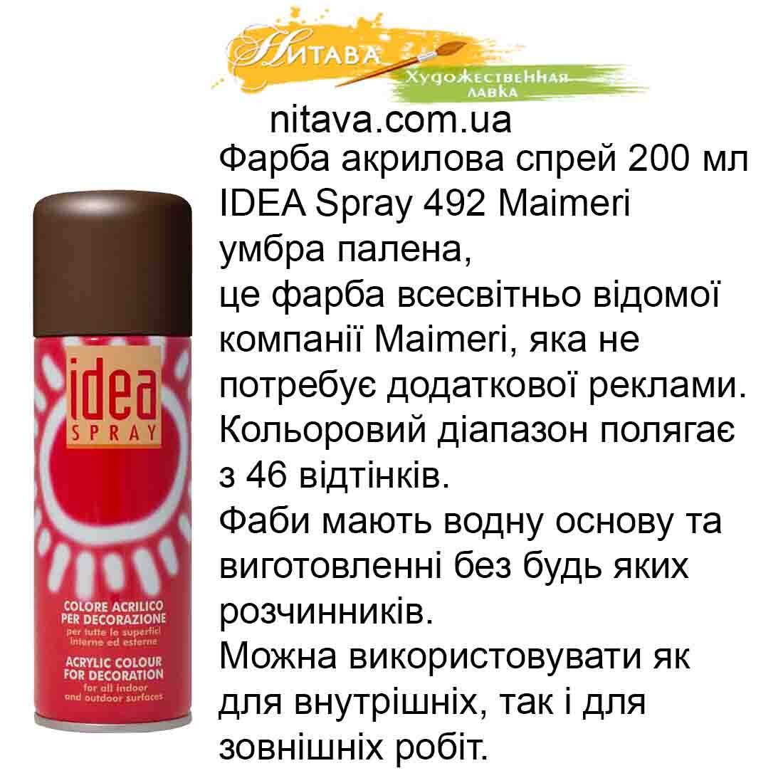 Фарба акрилова спрей 200 мл IDEA Spray 492 Maimeri умбра палена