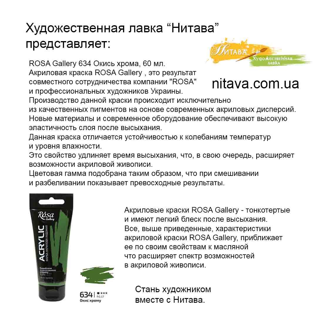 Рассматриваемая вами, Краска акриловая Rosa Gallery 634, также может оплачиваться по факту, при получении .
