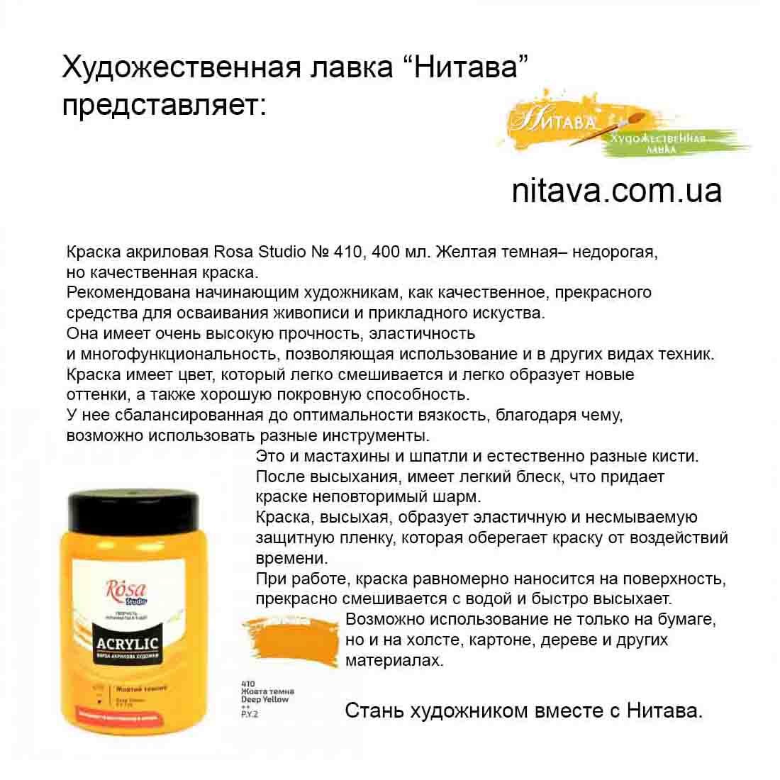 Рассматриваемую вами, Краска акриловая Rosa Studio № 410, 400 мл. Желтая темная, вы также можете получить оплачивая по факту.