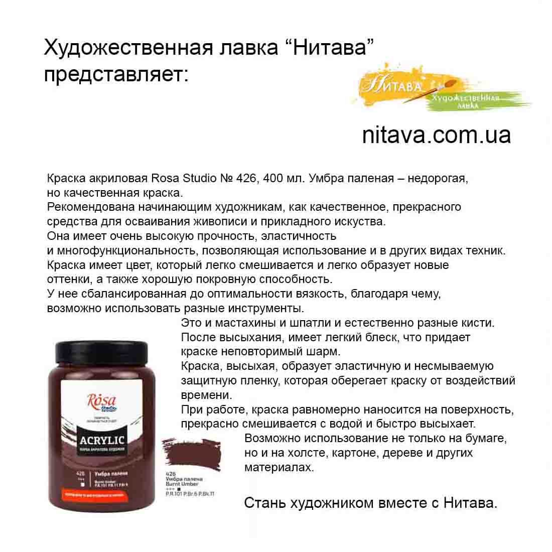 Рассматриваемую вами, Краска акриловая Rosa Studio № 426, 400 мл. Умбра паленая,
