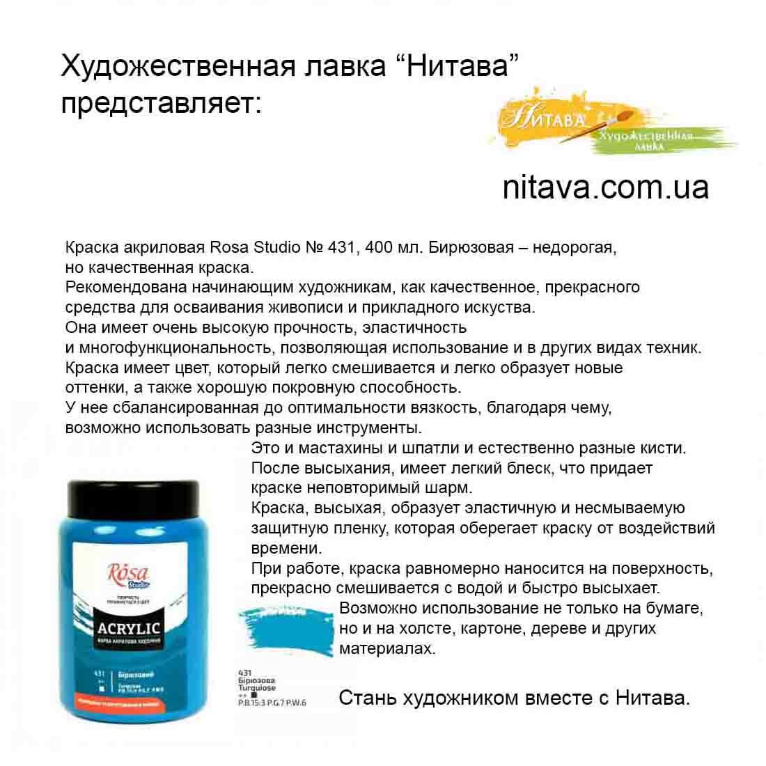 Рассматриваемую вами, Краска акриловая Rosa Studio № 431, 400 мл. Бирюзовая,