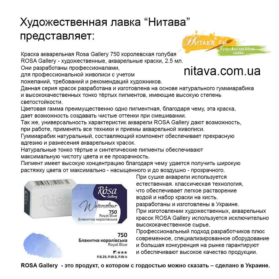 Фарба акварельна ROSA Gallery 2,5 мл Королівська блакитна 750