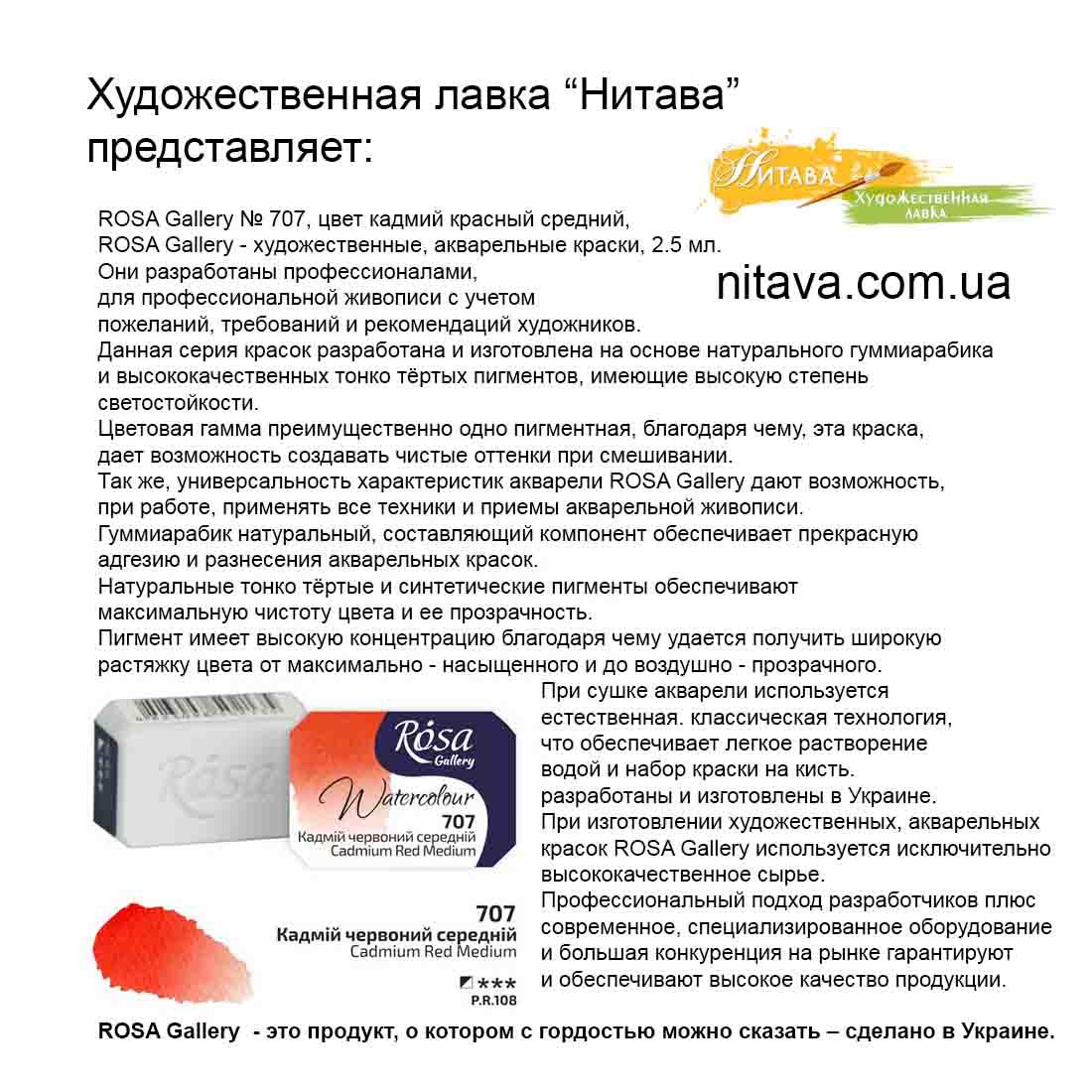 Фарба акварельна ROSA Gallery 2,5 мл Кадмій червоний середній 707