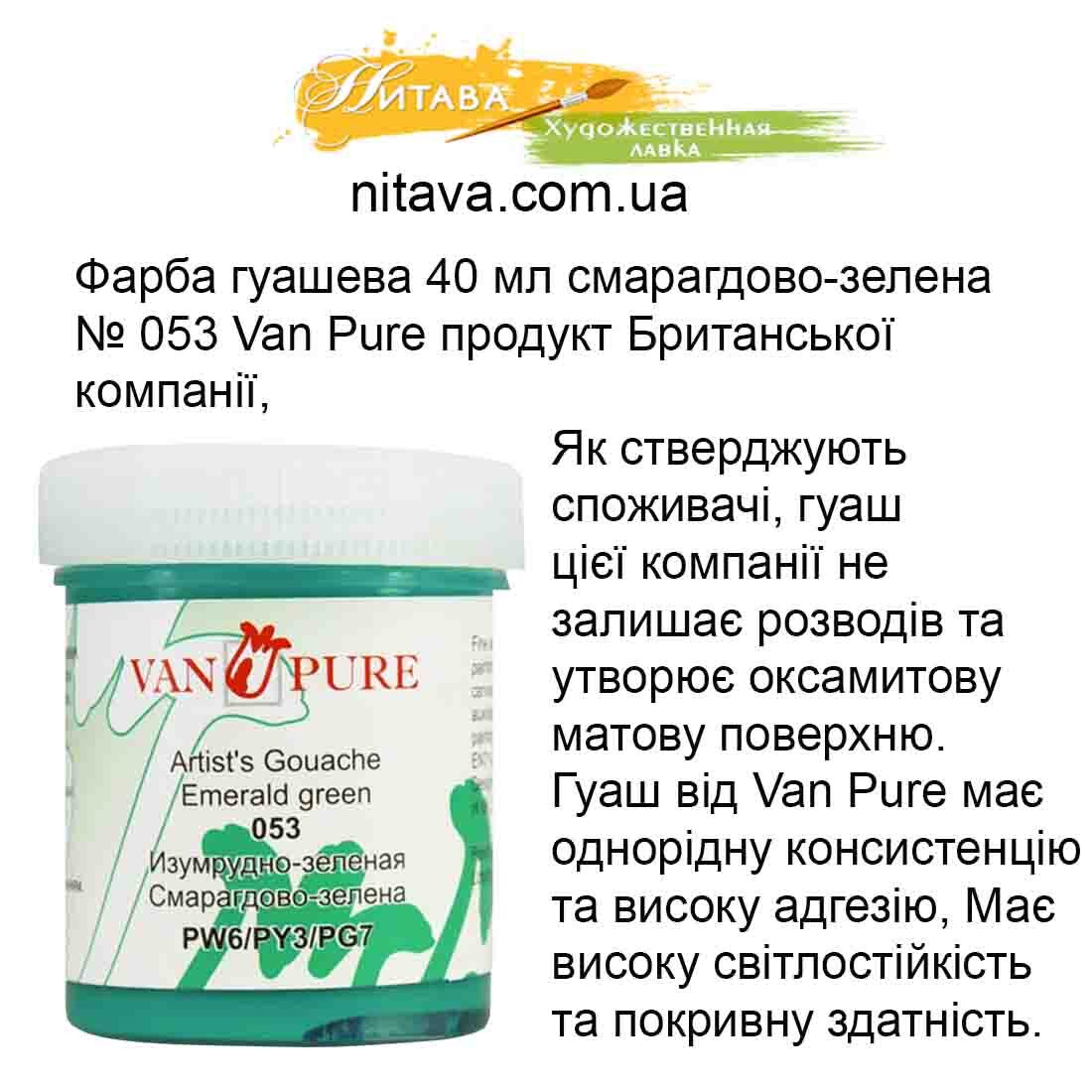 Фарба гуашева Van Pure 40 мл Смарагдово-зелений 053