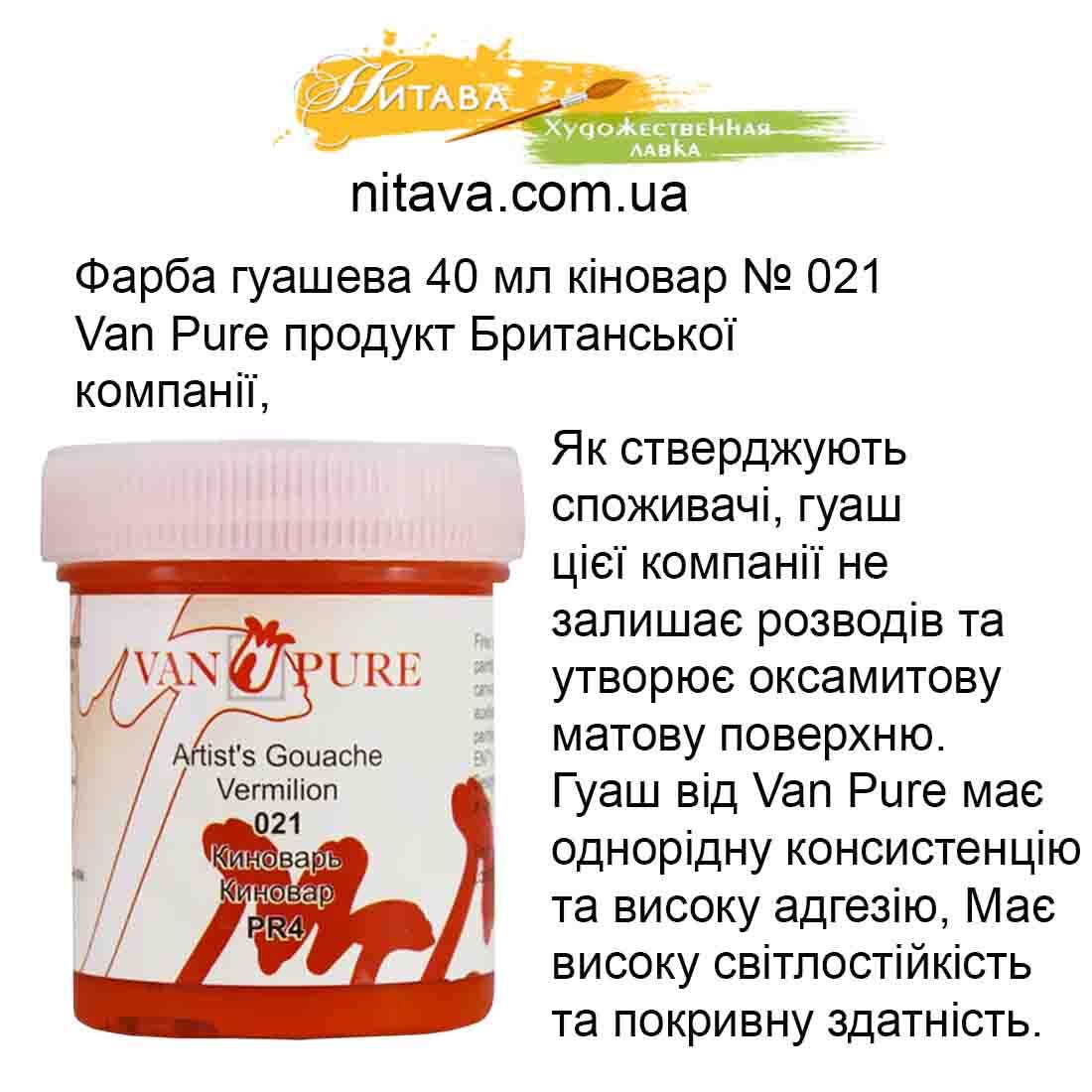 Фарба гуашева Van Pure 40 мл Киноварь 021