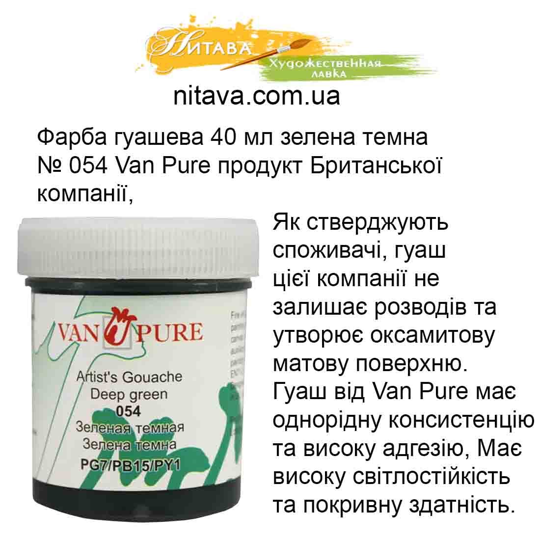 Фарба гуашева Van Pure 40 мл Зелений темний 054