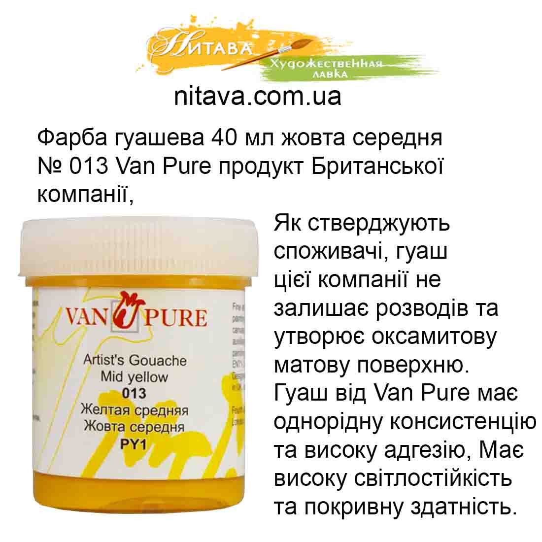 Фарба гуашева Van Pure 40 мл Жовтий середній 013