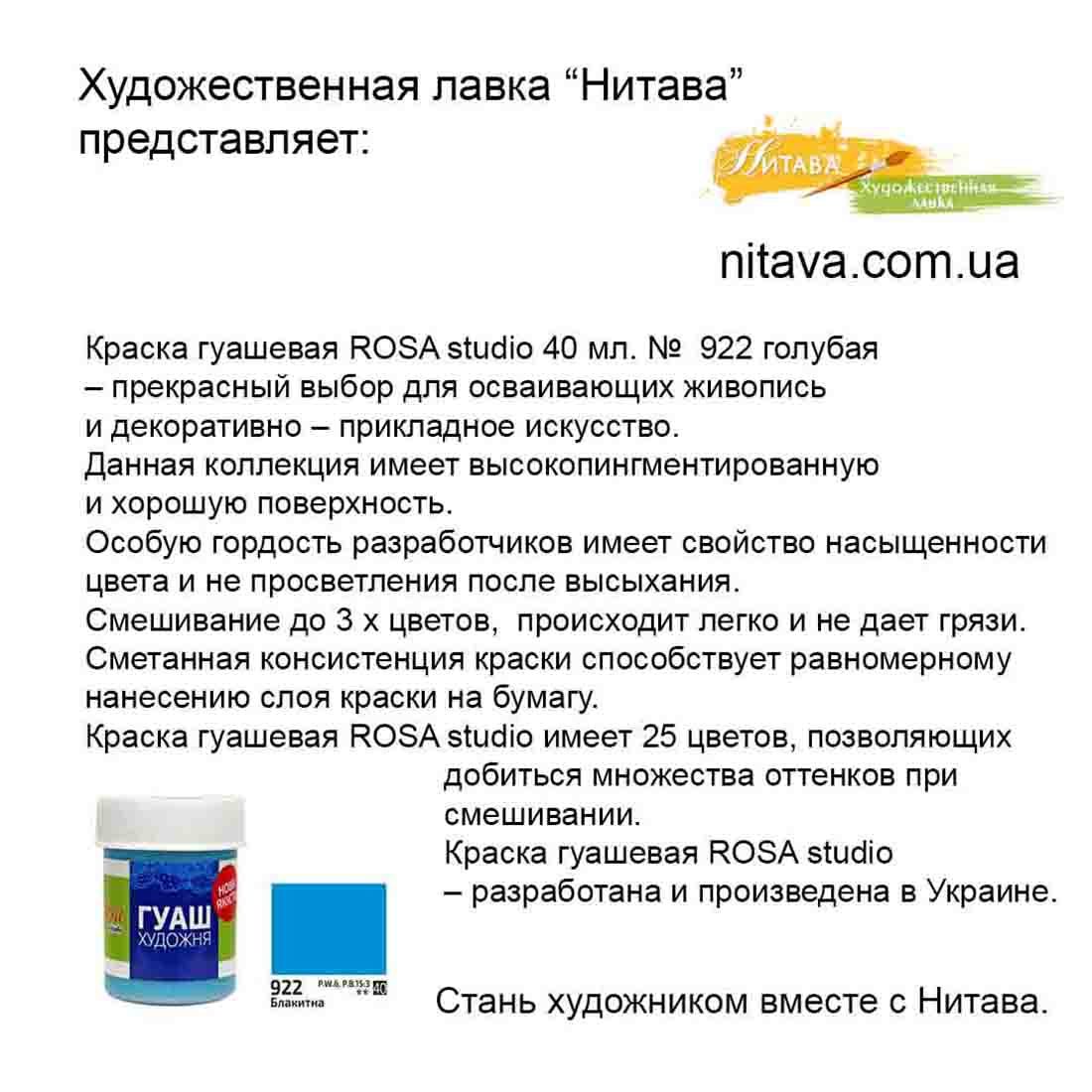 Краска гуашевая ROSA studio 40 мл. № 922 голубая