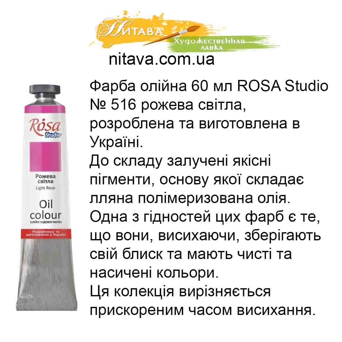 Фарба масляна ROSA Studio 45 мл Рожева світла 516
